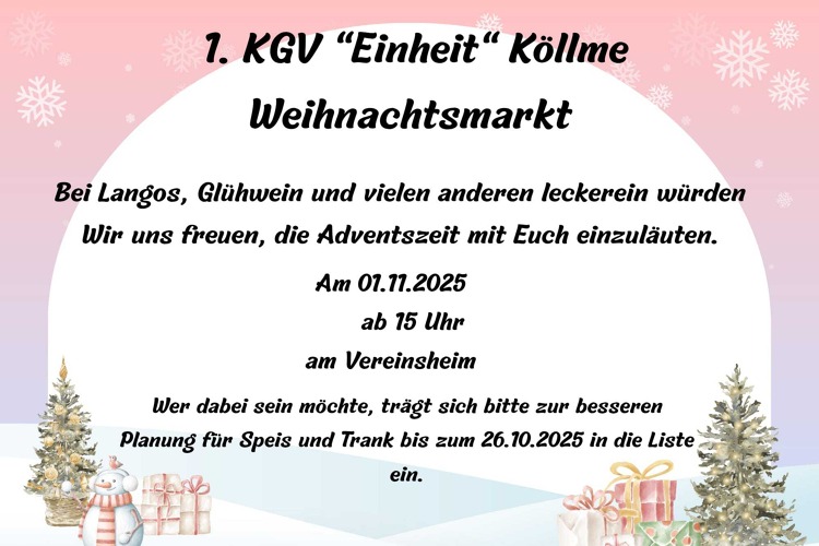 1. Weihnachtsmarkt des Kleingärtnerverein "Einheit" Köllme e.V.